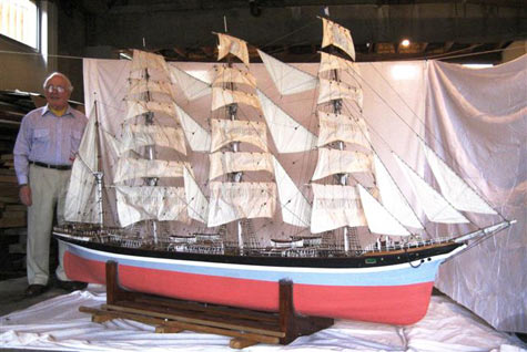 Suffice to say that in my humble opinion, this one, absolutely magnificent, hand-built-by-one-man scale model of the Harland & Wolff built barque Sindia represents an achievement par excellence in the world of model shipbuilding where good things take time and all the other attributes needed by the model shipwrights on this planet of ours. Ian Hunt, I am impressed beyond belief, I am proud to be your friend and I salute your achievement