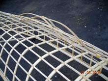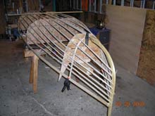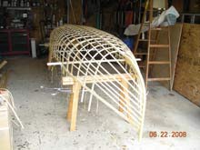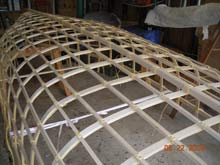 without glue or screws, with the exception of the rubrail, it could have been built a lot faster. Lashing each stringer with four turns,