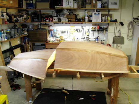 By the way, my son researched boat-building methods, then designed and built this hull for his high school senior project. He then turned it over to me for the interior and deck. He is graduating college this spring with a degree in aerospace engineering technology, so I figured I'd better get my part done.