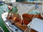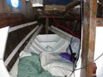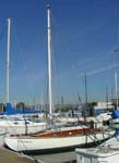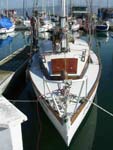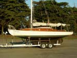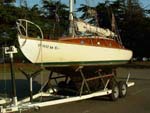 I couldn't resist. It was built in 1948, 26 feet long, all wood, teak deck, I paid $306 on Ebay. It was donated to a charity for auction. It's been in a slip at the Berkely Marina. I had to retrofit one of my trailers to hold it. It has been sailed over this past summer, but will need much TLC.