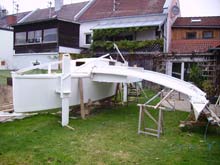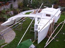 This is my proa. It is 7.5 m long and 4.5 m wide. It is based on the Port Madison Proa from Duckworks Design Contest #6. I will send more information later.