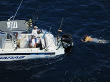 was following trying to tear holes in the nets to get the fish…an