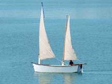 I think we're all headed for the Wooden Canoe Heritage Association's yearly Assembly at Keuka Lake NY July 15-19, though, so I'll sail Eden there if not sooner. This year's Assembly is featuring sailing canoes, so invites were heavy to get there again. Should be fun. When I last gave the sailing seminar there a dozen years ago, the perpetual argument between "heritage" & "wooden" was swinging back to wooden. So Buffleheads are plywood composites. We'll see what their attitude is now.