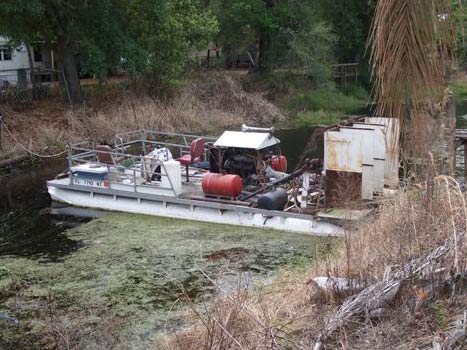 This is the boat I built for cleaning the canal it is in. It gets way overgrown with weeds.