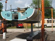 Here are a couple of pictures of hull number 0001 going out the door today. Started bolting on the keel this afternoon. Should be on the trailer and in the water by Monday.