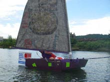 After all, it is two sheets of plywood that looks like a sandbox and sails with a tarpaulin sail. Their builders scrounge for parts, priding themselves on thrift and ingenuity, awarding their praise for creativity in build and use of materials for purposes never intended, probably never thought of before by their manufacturers.