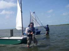 Well, about that “Born on the 4th of July” name. That’s the name of one of our PDR-OZ racers. Begun on July 4, 2009 after Mike returned from this year’s Texas 200 sailing, it is a red, white and blue, flag waving Duck. Why build not one but two PDR’s? Why build one at all? Mike has built and sailed his own boats up to thirty-two feet, sailed others into the fifty foot plus range, crewed on a Tall Ship. He isn’t exactly an entry level builder or sailor. Why build a Duck?