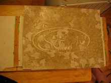 then pressed the stencil on. Carefully! It takes some real jockeying