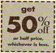 Tight times these are and people are always looking for a good bargain. And to have a choice of getting it at either 50% off or at half price makes it hard to decide on the better of the two!
