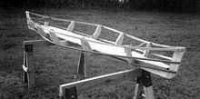 fabric. The sectional boat had a skin fashioned from a blue tarp.