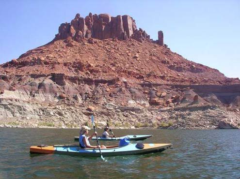 Sandra Leinweber under Castle Butte on Lake Powell