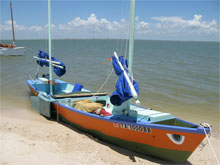 It was pretty much down hill (wind?) from here on. Sean and Andrew built their Laguna Sinko on the beach in 5 hours! I had planned to help him to make sure he did it right, but he did it without me. Sean sailed that boat with a couple of different people and did so faster than almost any other boat in the fleet. I did not get to tell him how to do it nor make suggestions as to how to do it better; they were always way ahead of me! He did manage to dismast the Laguna Cinco at one point, so maybe I still have SOME influence on him. He got yelled at by Andrew (not unique!) but set that to rights without my input, did the entire Texas 200, and watched his work go up in smoke. Somewhere there is a second POD hidden away!