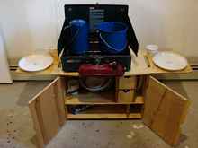 cooking and eat afterward. A Chuck box was required. Many designs