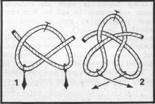 1. Twist both these loops over to the left as in Fig 2, then lay
