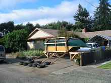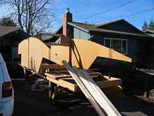 1. I extended the cabin front sloping forward 2 feet. This was to accommodate the porta-potti so it can be used in place. Also to hopefully foil the brunt of a green water wave over the bow if we venture out toward the Golden Gate. This also entailed lowering the thalwart beam to allow clearance to the head. A weaker configuration than the specifications. I did compensate in other forward structures. I boxed around the head and the cover serves as a step up onto the fore deck. There are wash boards fore and aft.