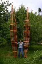 All together, as described, my 18 foot long 25-inch wide baidarka