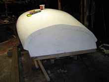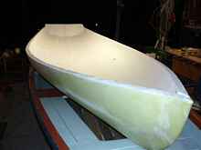 and sand it. Jose and I lifted the glassed hull off of the mold