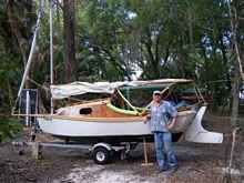 sailed good with just the big gaff sail. He's added a bowsprit