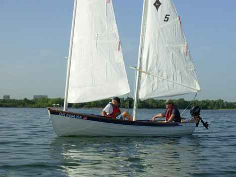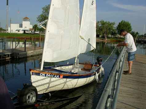 his home in Edmond, Oklahoma. She is a Lapwing 16 designed by