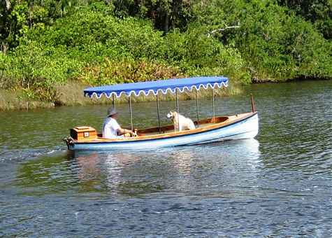 When it's running it looks and sounds like a diesel. You'll need a fuel pump but that's easy, just go to your local mower shop and buy one for about $10. I know, it surprised us also. They work off the vacuum at the carb and the diaphragm pumps the fuel. Our tank is up front along with the battery. If we do this again we'll use a 5hp and not worry about the electric start and a smaller lower unit, this one is from a 30. Howard knew about flexible couplings and such. Good luck.
