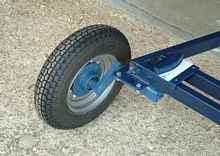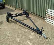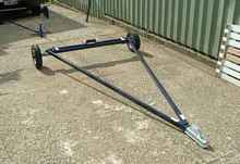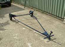 - The need to keep the main road-going trailer out of contact with sea water. Hence the piggy-back design. The launching dolly uses relatively cheap wheelbarrow wheels and a loose axle so that if corrosion does become a problem these parts can easily be replaced.