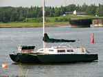 transom out of the water. I found that often I prefer to sit in the back or on the side, like when I just roam about or have a guest in the boat. For this I made my tiller-rudder combination. I have posted it long ago and don't know if you have seen it.