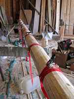Clamps- this may be a record. Stan's putting a rail on my 20 ft kayak and there are 105 clamps of one kind or another holding it on. If you haven't seen them, these white circles are pvc pipes. They work pretty good for light holding jobs. Paul was here last week and took this one of me out in the shop.