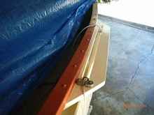 in a jam cleat on the gunwale well aft of the leeboard. This shock