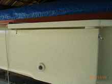 GV11 dinghy right way up under a semi-porous cover, out in the
