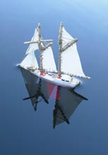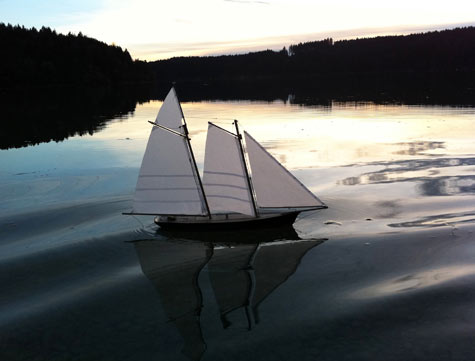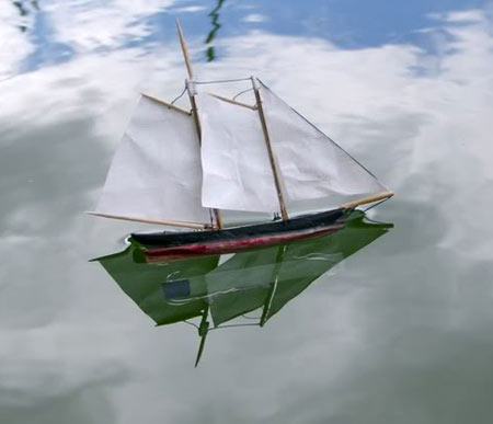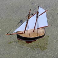 This was a  fun`challenge’ principally to set minds thinking, firstly about schooners (a type of sailing boat dear to the hearts of many) and secondly for some to prove that it was indeed possible to `go for the jugular’ and build the smallest ever model schooners that could sail. Harry of Hamilton East in New Zealand who built the little scow certainly did.  Well what now? Maybe someone should  form the Little Sailing Schooners of Planet Earth Association, keep track of these forerunners and promote the `think small’ Schooner message, perhaps even  seek some space on an existing website for reflecting and remembering what turned out to be `possible, and encouraging others!’  Whadja fink?   (Good name for a model sailing ship that!)