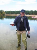 Harry Duncan with smallest free sailing schooner the NZ scow Mark Steele