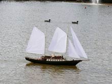 Early entrant Alistair Roach of UK with two entries, the bigger of the the two SS Great Britain and the freesail leader for some time, a 2.5" schooner Glasgow