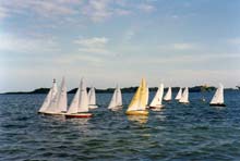 And then there was the end of regatta round the island race where the entire fleet competed in an anti-clockwise `rounding, and sailors took to the water themselves for about half of the course in order to win the event, perhaps get their name engraved on a galvanized bucket for posterity sake. To my mind it was the greatest little model yacht ocean race of them all, one always followed by another race, the one to the island bar!
