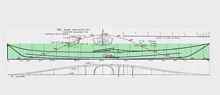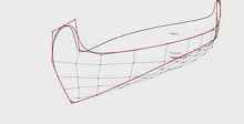 A scanned drawing used as a background image in Delftship. The dark lines show my modeled version of the kayak. |