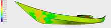 Example of Delftship’s “gaussian curvature shading” tool used to aid fairing. |