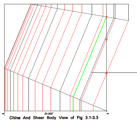 Article 3's formulas did not work until I finally noted that figure 3.1, 3.4 and 3.5 used a different boat as shown in figure 3.3. The example using figure 3.2 probably should explain that the chine also needs to be extended from station 24" using the same angle.