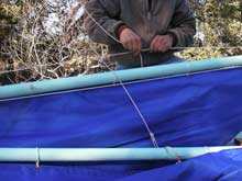 So, assuming a picture is worth a thousand words, I am including below a step by step pictorial guide to installing lazyjacks on a balanced lug.