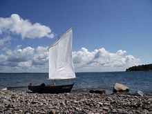 Hoist sail, running unreefed before a pleasant westerly. Make