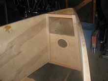 Once right side up, it was time to begin fitting her out with the deck, gunwales, rubrails and windows. I decided to (mostly) stick with the plans for all the various details. I found that I was at a point where it was time to paint. All along I had been mulling color schemes, and it was time for the final, difficult, decision. A trip to my True Value, and I had a gallon of Benjamin Moore Alkyd all purpose primer, a gallon of red oil based porch and floor enamel for the hull, and a quart of very light blue for the topsides. I wanted some bright wood, so the rubrails, gunwales, and slot top rails were masked off, and the paints rolled and tipped off. The masking was removed, and all brightwork received several coats of spar varnish.