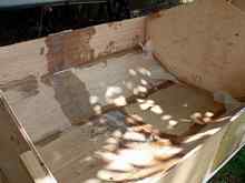 Once the panels are cut out. it’s out to the driveway to apply fiberglass buttstraps (the Dynamite Payson technique) to assemble the full size topside, bottom, and bilge panels. |