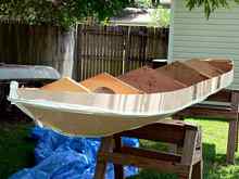 One change I settled on was in the thickness of the ply. Michalak recommended quarter inch (6 mm) ply. Because of projected hard use, I planned to fiberglass the hull inside and out where Michalak recommends fiberglassing only at the chines. To compensate for that, I reduced the ply thickness to 4 mm. Michalak has noted others have reduced the thickness on his other kayaks, in some cases to an eighth inch (3 mm). I’m hoping to keep the hull light enough so two people can carry it with ease, and one person can move it a short distance without undue distress. Our current two-person roto-molded 15 foot kayak weighs around 80 pounds and I’m hoping to better that.