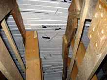 The foam boat pictures tell the whole story. The tools in the picture are all we used. Went to Lowes bought three sheets of 4 x 8 two inch thick Styrofoam for $12 each, ran them through the table saw two inches wide with a 3 degree bevel on both sides, tied them to the boat with dental floss, stuck them together with bamboo skewers, no glue, rough finished with a sureform plane and sandpaper and glassed it.