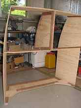 Initially, some terminology on the plans needed explanation, and we worked this out over a couple of emails. One important thing was the available material sizes in Australia. Although similar to the US, clarification was required. The plans call for building the rear module first, as it is a simpler build, with straight sides. As he read through the plans however, he determined that he would start construction on the forward module first, as this took up the least working floor space, for which he had little at the time. That may have been a beginners error. Initially things went along pretty smoothly, with an occasional question here and there, but progress was being made. Then things began to unravel.