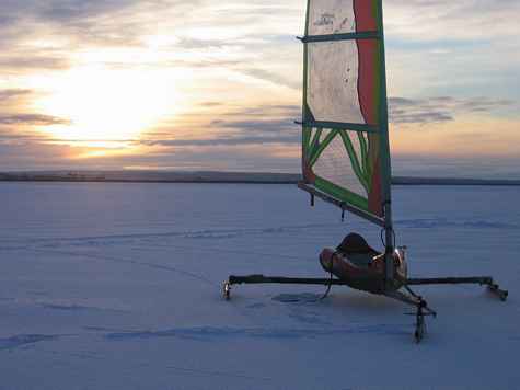 atop 4 inches of smooth, hard ice. Wind out of the NE, 8 mph,