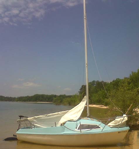 Attached is my project boat (1973 Skipper 17) supplied with line, stays, turnbuckles, blocks, sail ties and more from Duckworks. This boat sat in a friend's yard for 26 years unloved. It now has a new life.
