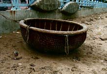 The Irish coracle type boats of Vietnam are alive and well, very popular North and South tending traps and nets. My friend Emmet in the Merchant Marine saw them last year in the middle of the South China Sea working off a mother ship. The examples that I saw this year at Vung Tau and Nha Trang had laminated frames and gunwales lashed with heavy monofilament, the woven hulls waterproofed with tar or resin. Roughly 6 ft. round, about 2 ft. deep, they are easily carried above the high water line or aboard of a larger vessel.