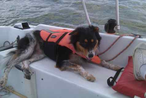 That's my dog Snickers out on the bay on the Irwin 28.