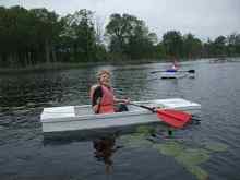 Pool session in Asheville, NC. Eli plans make a saddle, since the boat has no seat.