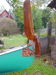 An unplanned but highly appreciated advantage of the design is that the rudder will stay up on its own for launching or if I need to paddle the canoe stern first.