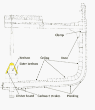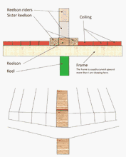 Sitting on top of the keel where the frames lay across, the keelson is the mysterious member of a ship's structure. No one designer has the best rule for how to design keelsons, how thick they should be or how they should sit on the keel. Each designer has his own preferences, and the purpose for which the ship is built plays a role. Some huge ships have lighter keelsons made up of several members called 'riders', and some lighter ships have heavy timbers for the keelson.